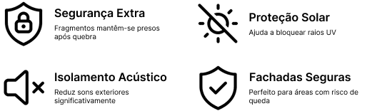 Combina os benefícios do vidro temperado com a segurança do vidro laminado. É altamente resistente ao impacto e, em caso de quebra, mantém-se unido pela película interna. Indicado para projetos que exigem máxima segurança e resistência, como guardas, coberturas ou fachadas.